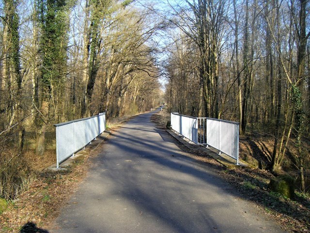 Der etwa drei Kilometer lange Spaziergang (sechs Multis) führt euch durch eine angenehme Umgebung, die zwischen Wald, Wiese, alte Eisenbahnlinie und Flüssen variiert.