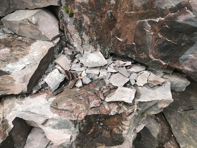 På GZ vil du se massevis av Ryolittbiter og som du ser danner ganske mange av de skarpe kanter, og det er jo lett å forestille seg at ved litt bearbeidelse vil de fungere utmerket både som kniver, økser, spydspisser og lignende verktøy.