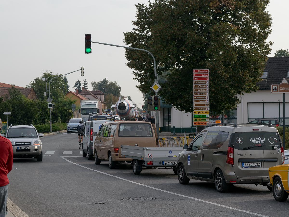Tuto kešku věnujeme události zvané Velký přelet, tedy přesněji jejímu startu. Dne 23. září 2016 se kolem půl desáté dopoledne otevřela brána letecké základny ve Kbelích a z ní začal do křižovatky ulic Mladoboleslavská a Polaneckého pomalu vycouvávat tahač s nákladem trupu TU-154M. Poté se vydal směrem na Vinoř, aby o 3 dny později zaparkoval v cíli, kterým bylo Letecké muzeum v Kunovicích. Kromě organizátorů, doprovodu, policie a televizních štábů se na akci přišlo podívat i mnoho zvědavců, často i s fotografickou technikou a dokonce i malá skupinka hovořící rusky. Ani nás to nenechalo v klidu, šéfová sice musela do školy, ale já dopředu kolegům v práci oznámil, ať mě v pátek čekají až na oběd, a dopoledne jsem rozšířil hlouček zvědavců u brány. Pochopitelně jsem si sebou vzal foťák s krátkým i dlouhým objektivem a několik fotek je součástí listingu. Celý konvoj jel přes Kbely velmi pomalu a zástup zvědavců jej ještě chvilku následoval. Já se ale po chvilce oddělil a šel se podívat k plotu na osiřelý druhý TU-154M (viz keška). I jeho trup 17. prosince 2016 hodinu po půlnoci „odstartoval“ ke svému přeletu, pro změnu do Air Parku ve Zruči u Plzně. Ani zde jsem nechyběl, byl jsem v Tupolevově ulici v Letňanech a noční fotky též přikládám. Kromě cest trupů, které jsou nadměrným nákladem a vyžadují doprovod a pečlivou přípravu, cestovaly i další části samostatně bez velkého doprovodu a už téměř bez zájmu veřejnosti.