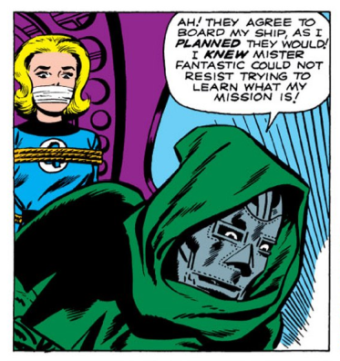 Opis – Dr Doom włada mistycznymi mocami i jest geniuszem w wielu dziedzinach nauki. Jego zbroja daje mu super siłę, możliwość latania, wytwarza pole siłowe, umożliwia mu oddychanie pod wodą, a nawet w kosmosie.