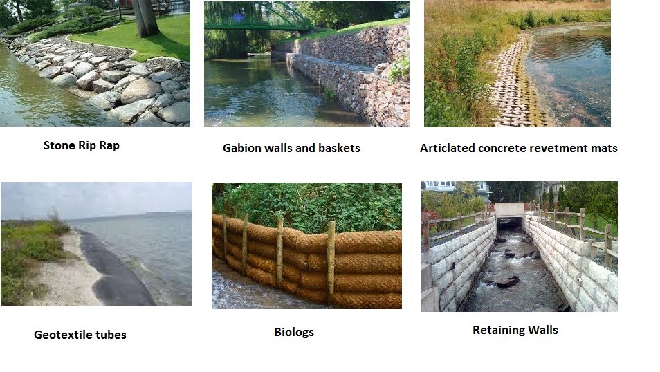 These techniques can be more expensive however have the advantage that they are more permanent and last longer so can be more cost effective where shoreline erosion is a concern. They include”