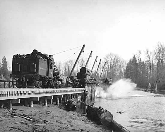 This area is where the railroad ended and logs were dumped from the trains into the river.