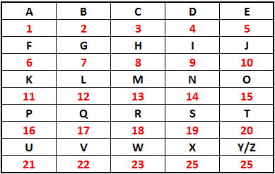 1º) Utilize a grade abaixo para substituir a letra inicial de cada nome, ignorando as preposições, pelo seu respectivo número: