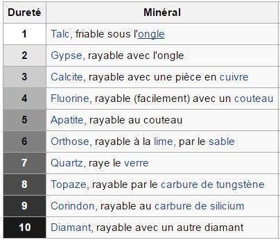 L'échelle de Mohs fut inventée en 1812 par le minéralogiste allemand Friedrich Mohs afin de mesurer la dureté des minéraux. Elle est basée sur dix minéraux facilement disponibles.