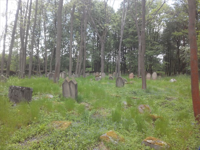 Židovský hřbitov založený okolo roku 1700 leží severovýchodně od Všerub, jižně od silnice Všeruby - Kunějovice, na západním okraji strmé rokle nad bezejmenným potokem. Jeho terén je plochý, svažující se k jihovýchodu, s výměrou 2.797m2. Je obehnán zdí z lomového kamene o původní výšce cca 150cm. V západní části uprostřed hřbitova je patrné místo vstupní brány, která se bohužel nedochovala. Celkem se zde nachází 345 náhrobků, v severní části jsou starší, převážně pískovcové s hebrejskými nápisy. V jižní části se povalují poškozené novější náhrobky ze žuly s nápisy německými. Přesto je patrná geometrie řad, jichž lze napočítat 25.