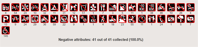 If you would like to document completion of the challenge in your online Found-it log, just copy and paste the challenge checker's example log or an image of your Collected Negative Attributes matrix from either GSAK or Project-GC. See my matrix below: