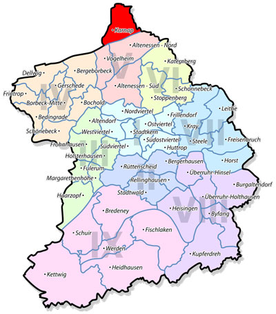 Karnap ist der nördlichste Stadtteil von Essen. Es ist der einzige Essener Stadtteil nördlich der Emscher. Das 1332 erstmals urkundlich erwähnte Carnap wurde bis 1910 mit „C“ geschrieben. Es ist geprägt durch seine besondere geographische Lage. Die ehemalige Bauerschaft Karnap gehörte der 1808 gebildeten Munizipalität Altenessen an, und damit ab 1813 zur Bürgermeisterei Altenessen. Bei deren Eingemeindung im Jahr 1915 in die Stadt Essen schied Karnap aus und erlangte für kurze Zeit kommunale Selbstständigkeit. Bürgermeister während dieser Zeit war Carl Hold. Im August 1929 wurde auch Karnap nach Essen eingemeindet. Karnap war über 100 Jahre sehr stark durch den Bergbau mit seinen zahlreichen Nebenbetrieben geprägt. Es war bis in die 1950er-Jahre ein Stadtteil, der mehr Arbeitsplätze als Einwohner hatte. Der Niedergang des Bergbaus zog sich durch die 1960er-Jahre und erreichte Ende Dezember 1972 mit der Stilllegung der Zeche Mathias Stinnes seinen Höhepunkt. In einem knappen Jahrzehnt waren über 6.000 Arbeitsplätze verloren gegangen. Die 1982 an der Haltestelle Arenbergstraße aufgestellte Seilscheibe der Zeche Mathias Stinnes 3/4 in Brauck erinnert an die Bergbautradition. Quelle : Wikipedia