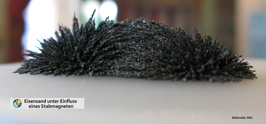 Am besten sammelt man den Magneteisenstein, indem ein glattes Blatt Papier knapp über den Sand gehalten wird und den Magneten darüber langsam hin- und herfüht. Dann hält man das Blatt über ein breites Gefäß, nimmt den Magneten weg und das saubere Mineral fällt hinein, ohne dass du es mühsam vom Magneten abstreift werden muss. Übrigens: Der Sand muss natürlich wirklich trocken sein!
