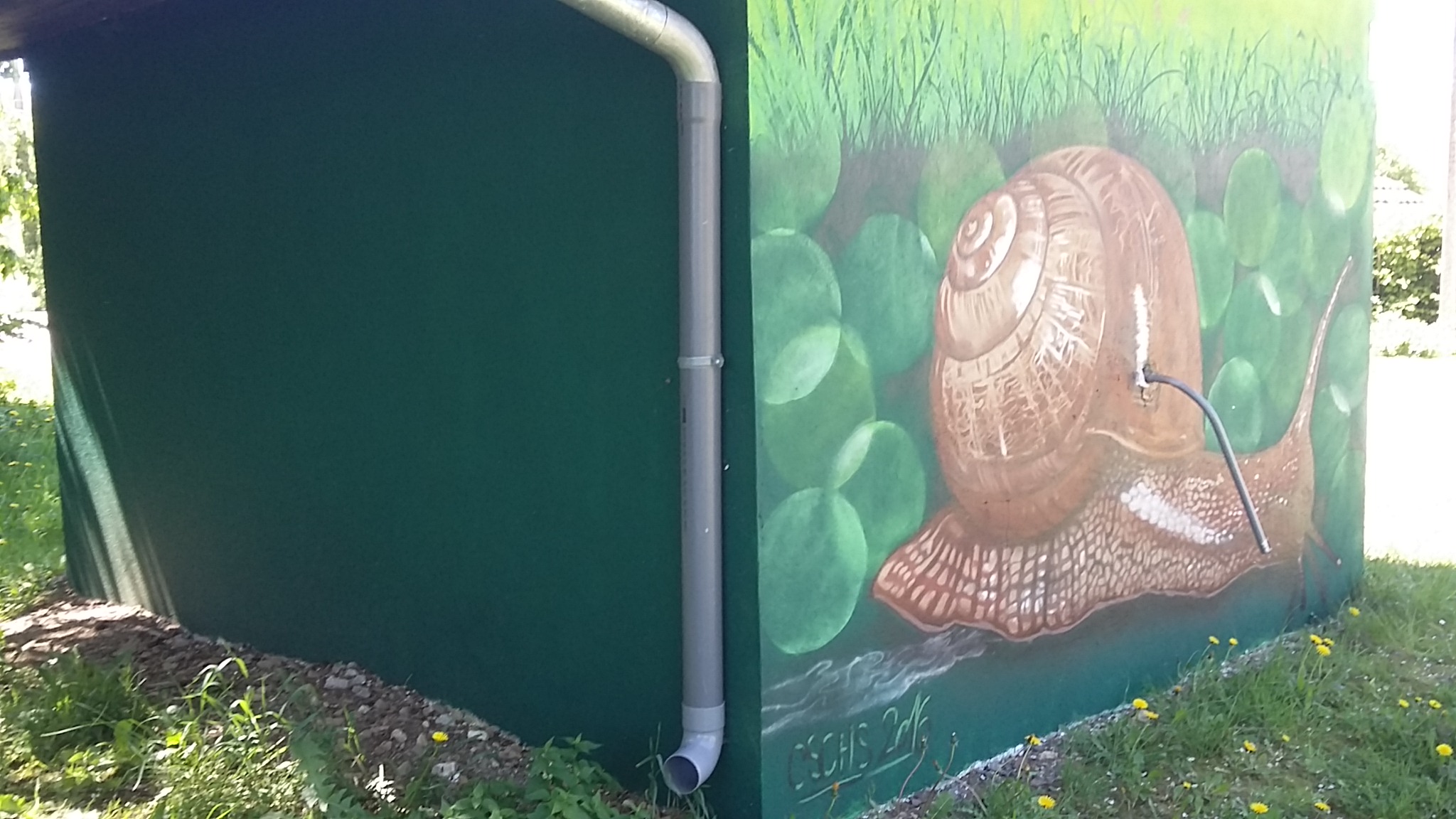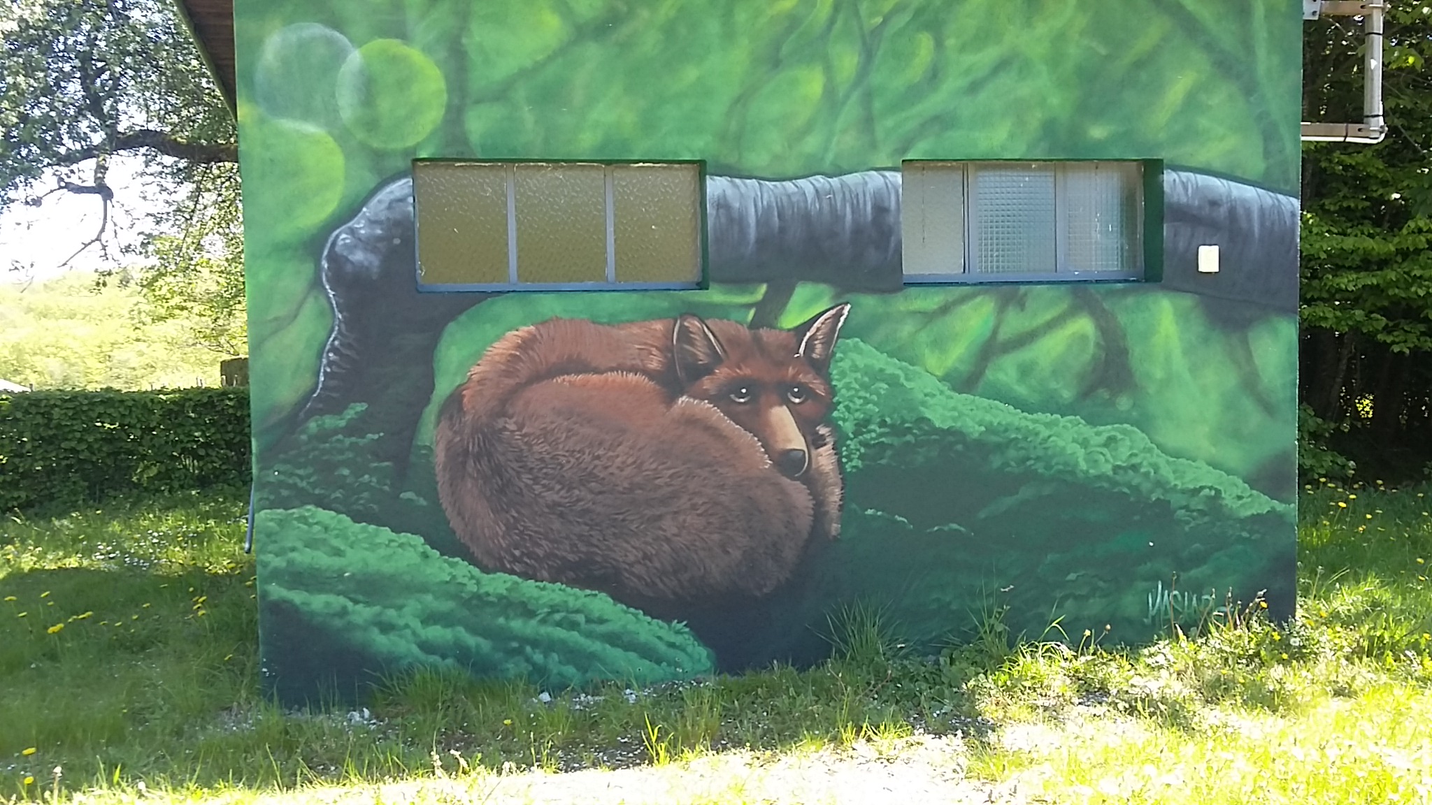 Le renard et l'escargot. Nouvelle fable de La Fontaine ? Non. Simplement une peinture murale pour égailler les lieux.