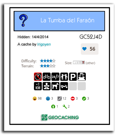Recorriendo el tablero, contemplaréis algunos de los caches más recomendados de la comunidad, pero no se trata de puntos favoritos, ni mucho menos. Son tesoros que por uno u otro motivo son muy recomendables visitar. Por supuesto, esto es una opinión personal; si quisiéramos mostrar todos los caches que se lo merecen, esta serie no tendría fin, así que hemos tenido que hacer de tripas corazón. Valga este pequeño homenaje como reconocimiento al gran esfuerzo que hacen todos los geocachers.