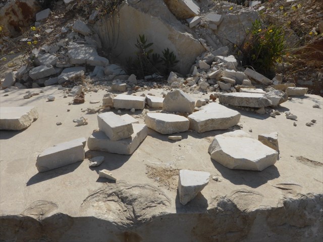 2. Am Wegpunkt ZO (N 40 ° 21.551 E 009 ° 39.042) sind Stürze wie oben abgebildet. Nehmen Sie den Mohs-Test mit Ihrem Nagel, einer Münze (0,10 oder 0,20 €) und Ihrem Taschenmesser. Was gehts dir ab?