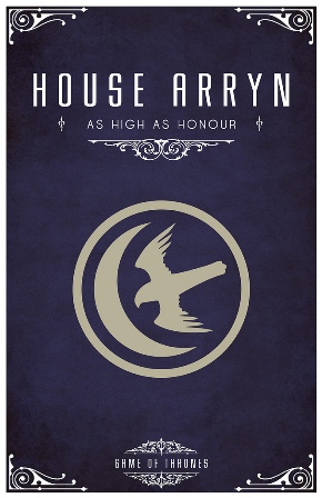 Su fortaleza es Nido de Aguilas, su blasón una luna creciente y un halcón de plata en campo de cielo y su lema es: «Tan Alto como el Honor».