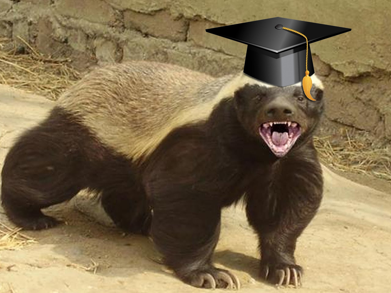 This cache has been placed to celebrate the graduation of HoneyBadger34. It is hanging in a pine tree and is a short walk from parking.
