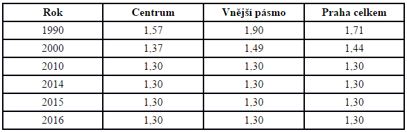 7) Jaká byla průměrná obsazenost osobních automobilů v centru Prahy v roce 2016?