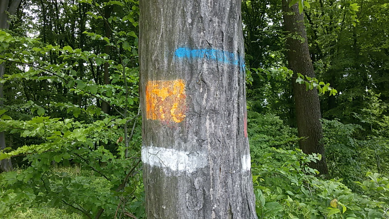 Chvíľočka a už si na hranici chotára, aj takéto značky na strome tomu nasvedčujú:
