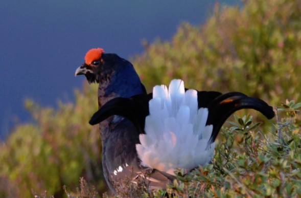 In der Balzzeit schwellen den männlichen Waldhühnern ihre roten Balzrosen, auch (K) genannt, stark an, um andere Hähne zu warnen, nicht zu nahe zu kommen.