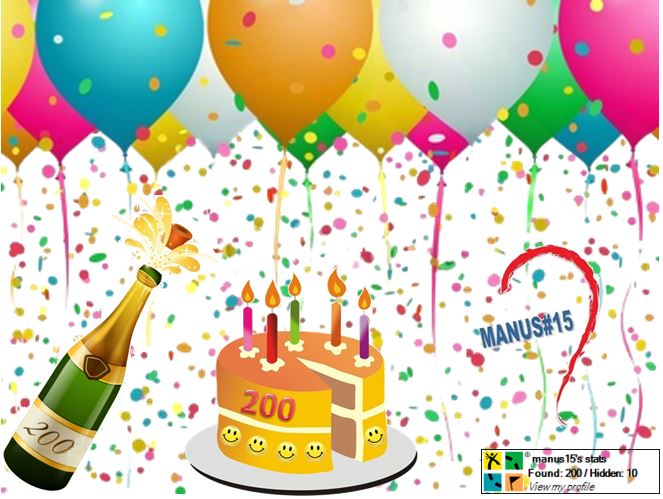 Para comemorarmos a nossa ducentésima Geocache decidimos esconder mais um tesouro e proporcionar-vos mais um sorriso no mapa :-)
