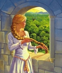 El pobre hombre no tuvo más remedio que aceptar. Tan pronto nació, la bruja se llevó a la hermosa niña. La llamó Rapunzel. La belleza de Rapunzel aumentaba día a día. La bruja resolvió entonces esconderla para que nadie más pudiera admirarla. Cuando Rapunzel llegó a la edad de los doce años, la bruja se la llevó a lo más profundo del bosque y la encerró en una torre sin puertas ni escaleras, para que no se pudiera escapar. Cuando la bruja iba a visitarla, le decía desde abajo: