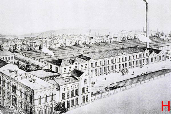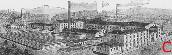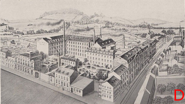 Wie an Fabrik Nr. 2 ist auch hier nichts mehr vom alten Glanz übrig. Die auf dem Gelände früher ansässige, 1994 geschlossene Firma stellte qualitativ besonders hochwertige Nadeln her. Auf einem Briefkopf aus den 1880er Jahren sind die zahlreichen Auszeichnungen - u.a. auf der Weltausstellung 1876 in Philadelphia - aufgeführt. An der Straße am rechten Bildrand steht in zweiter Reihe ein rot getünchtes, älteres Gebäude.
