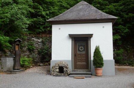 Am Fuß der Kapelle, inzwischen eingefasst mit Bruchstein, quillt immer sehr kaltes Wasser aus einer Quelle, dem man heilende Wirkung nachsagt und darum befeuchten auch heute noch Pilger ihre Augen mit dem Wasser.