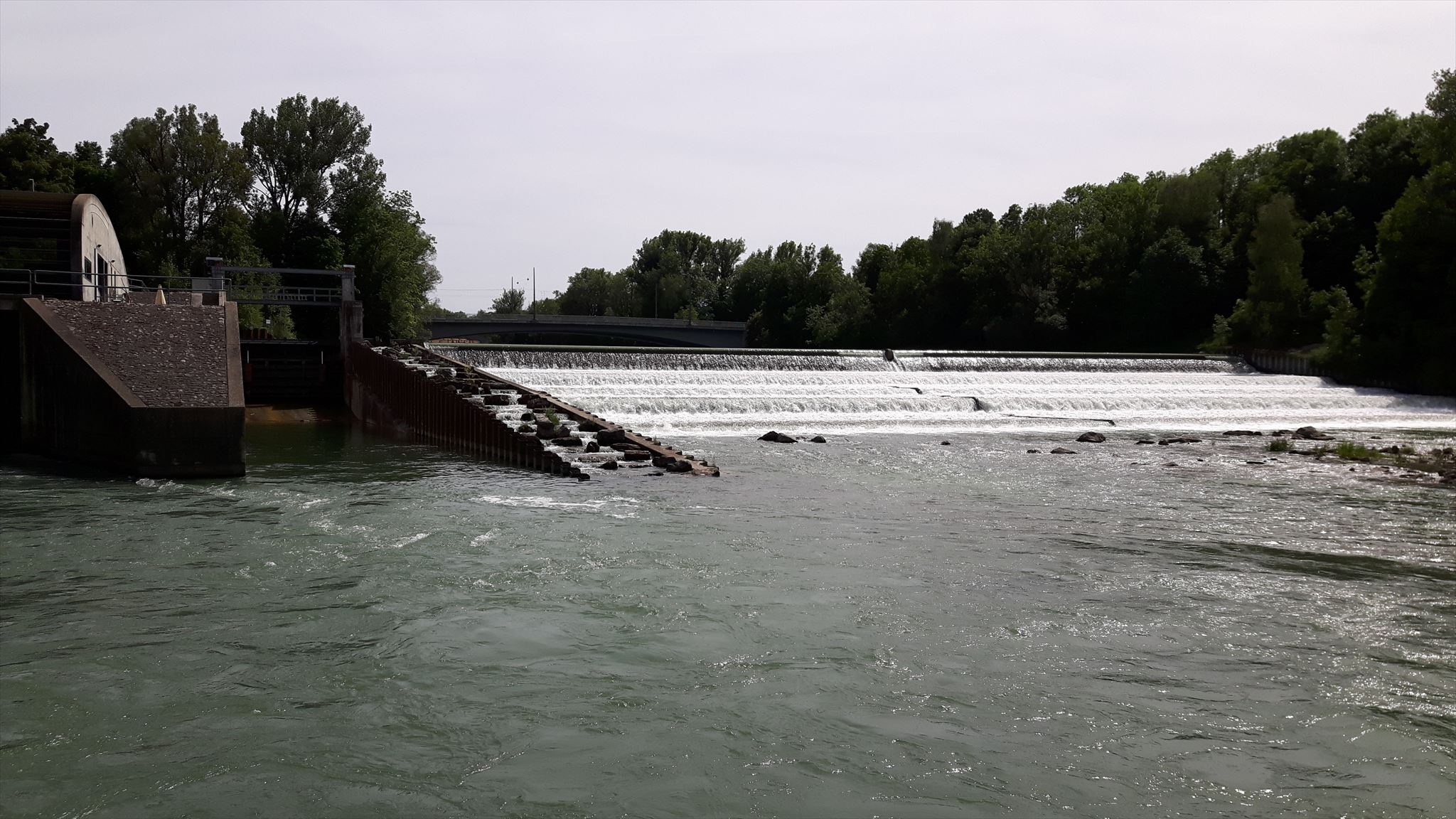 Blicke in Richtung Wasserkraftwerk. Was ist Anglern laut Beschilderung hier nicht erlaubt?