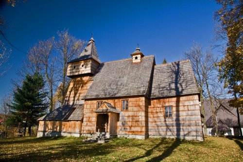 Kościół pomocniczy św. Marcina w Grywałdzie datowany jest na 2. poł. XV w. Kościół, reprezentuje starszy typ kościołów drewnianych w Małopolsce. Głównym akcentem budowli jest wieża, szeroko posadowiona, o ścianach silnie zwężających się ku górze, z wydatnie nadwieszoną izbicą. Malowniczość kościoła podkreślają oszalowane soboty. W prezbiterium i w nawie zachowała się polichromia z 1618 r. Do wyposażenia należą trzy ołtarze, w głównym umieszczono interesujący tryptyk późnogotycki z pocz. XVI w. Obraz w polu środkowym przedstawia św. Marcina, siedzącego na białym koniu, w momencie gdy część swego bogatego płaszcza odcina dla ułomnego żebraka.