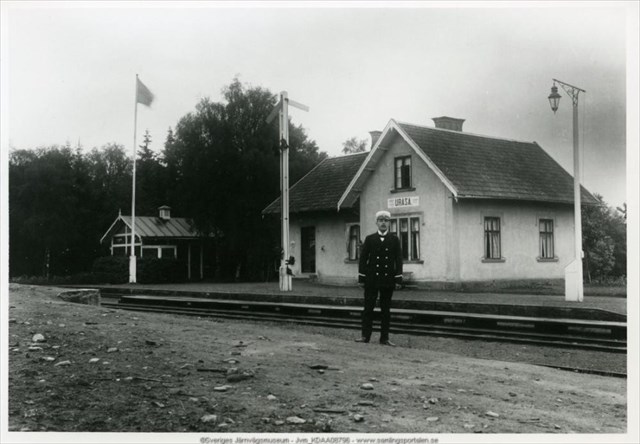 Fotografiet nedan visar Stationsmästare Fabian Magnusson framför Uråsa station år 1916.