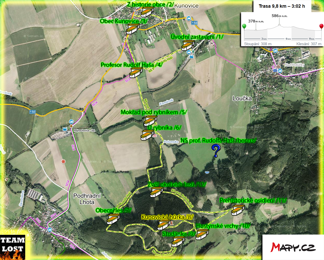 Celá trasa měří kolem 10km a rychlejším tempem se dá zvládnout za 3 hodiny, když se k tomu připočtou keše, počítal bych s 5 hodinami. Zaparkovat se dá u vlakového nádraží viz. waypoint. Keše jsme dali jako lehké multiny, protože nám to tak nejvíce vyhovuje. Někde naleznete micro, někde small. V keších nejsou tužky! Snad tato série vydrží co nejdéle, protože v tomto lese jsou lesníci hodně aktivní. Série vznikla jako reakce na uvolnění místa po archivaci kunovické radlice. Na úvodních souřadnicích vždy naleznete informační tabuli a v listingu keše otázku, na kterou pomocí info tabule zjistíte správnou odpověď, tudíž i souřadnice umístění keše. V každé keši naleznete bonusové číslo, pomocí kterého vypočítáte bonusovou keš této série.