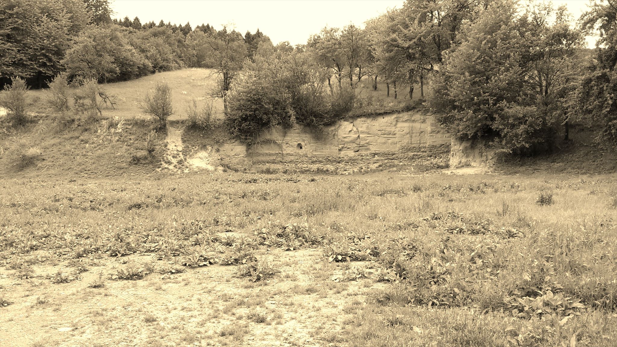 Dieser EarthCache befindet sich nicht direkt an der ehemaligen Lehmabbaustelle, sondern unterhalb davon, wo sich die gleiche geologische Schichtung zeigt. An dieser Stelle sieht man übrigens auch gut, dass Ton wasserstauende Eigenschaft hat: Auf der Fläche zwischen dem Weg und der Abbaukante finden sich zahlreiche Pflanzenarten, die ein feuchtes Habitat bevorzugen.