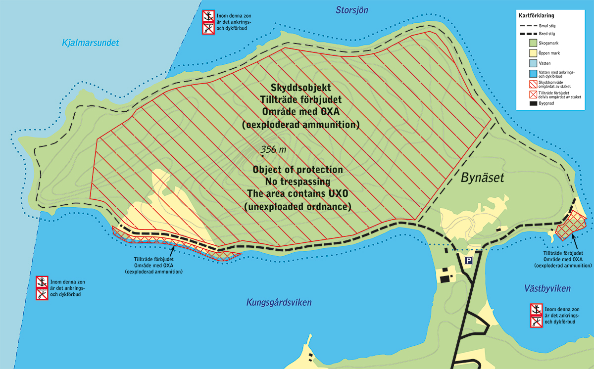 Man får nu gå, springa och cykla på stigarna runt Bynäset. De inre delarna är dock omgärdade av ett trästaket som man inte får klättra över. Såklart ligger ingen av cacherna i närheten av detta staket