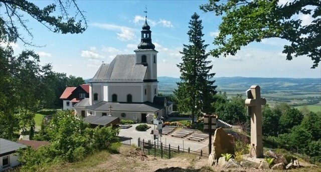 Pod vrcholkem stojí poutní kostel Panny Marie Sněžné z r. 1782 a křížová cesta, která vede od kostelíku na něj. Díky tomuto kostelu je lehce rozeznatelná z velké dálky a všech směrů.