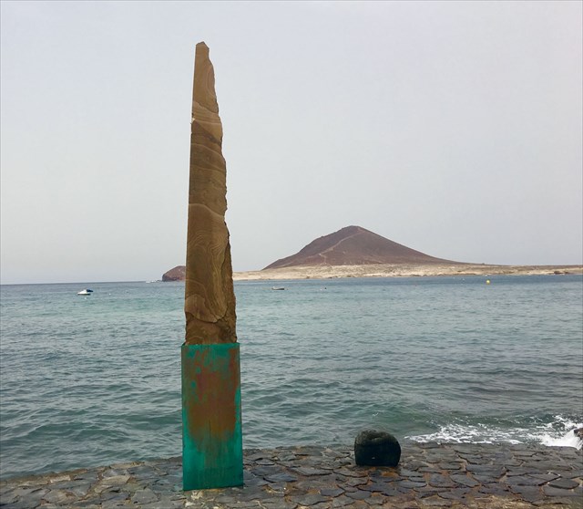 1. What material is the sculpture AGUJA made of?