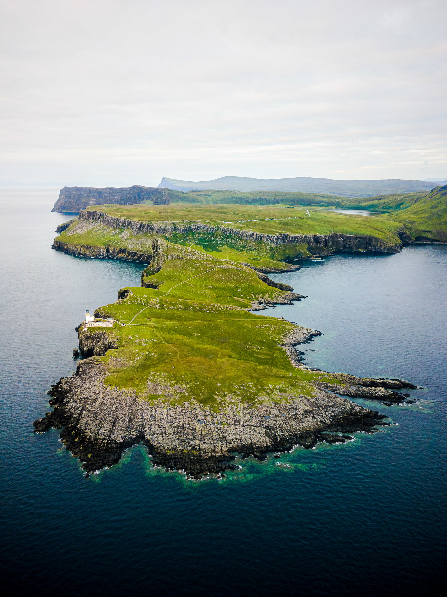 A steep, surfaced path drops from parking (you'll feel the steps coming up!) and then crosses this headland to Neist Point Lighthouse, where this cache is hidden.