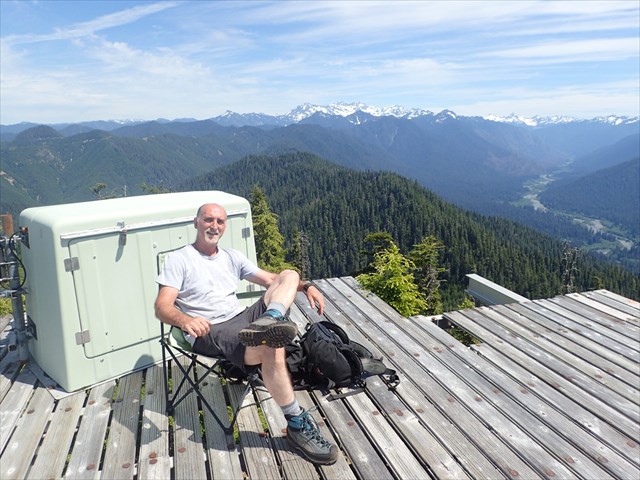 Kloochman Rock, at 3,356' is 14 miles NNW of Lake Quinault and was home to a fire lookout from ~1934 to 1957. Although the cabin is gone, the peak still holds a platform used as a helipad by the park service. To get there take the Hoh Mainline to the C-3000 road, Left at the C-3100 road then right on un-numbered road up the hill to the trailhead. The hike is just under 1/4 mile, but climbs ~470' in that distance. The cache is before the park boundary on a relatively flat section of trail.