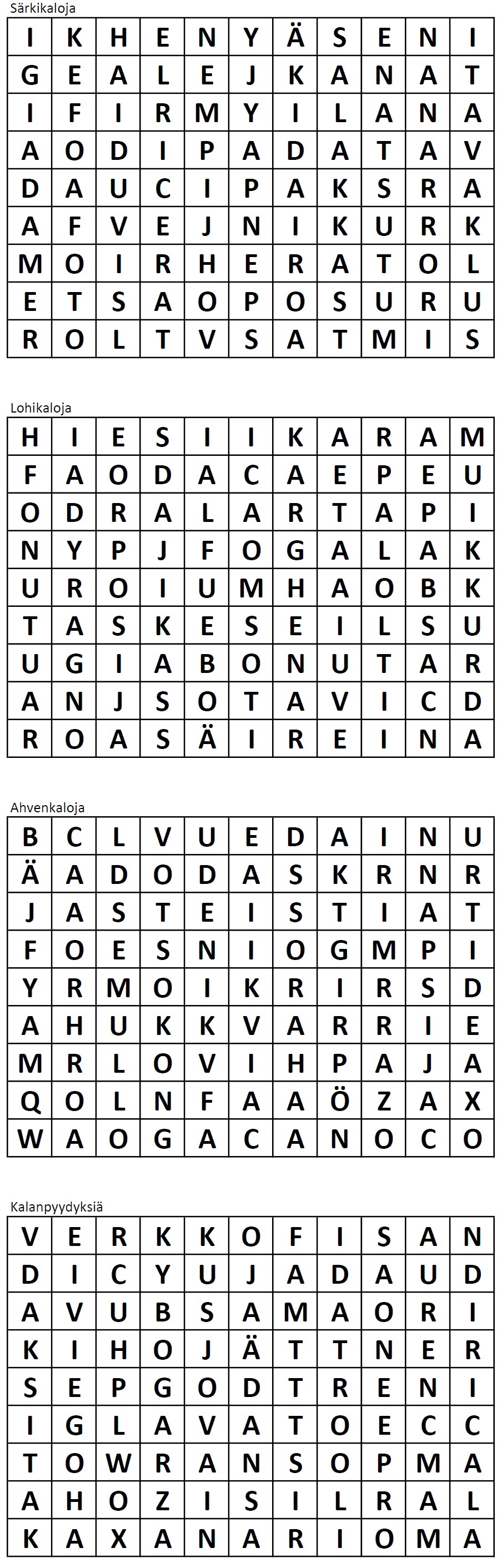 B: Ainut lohikala, minkä nimi loppuu kirjaimeen I. Sanan kirjainten lukumäärä ?