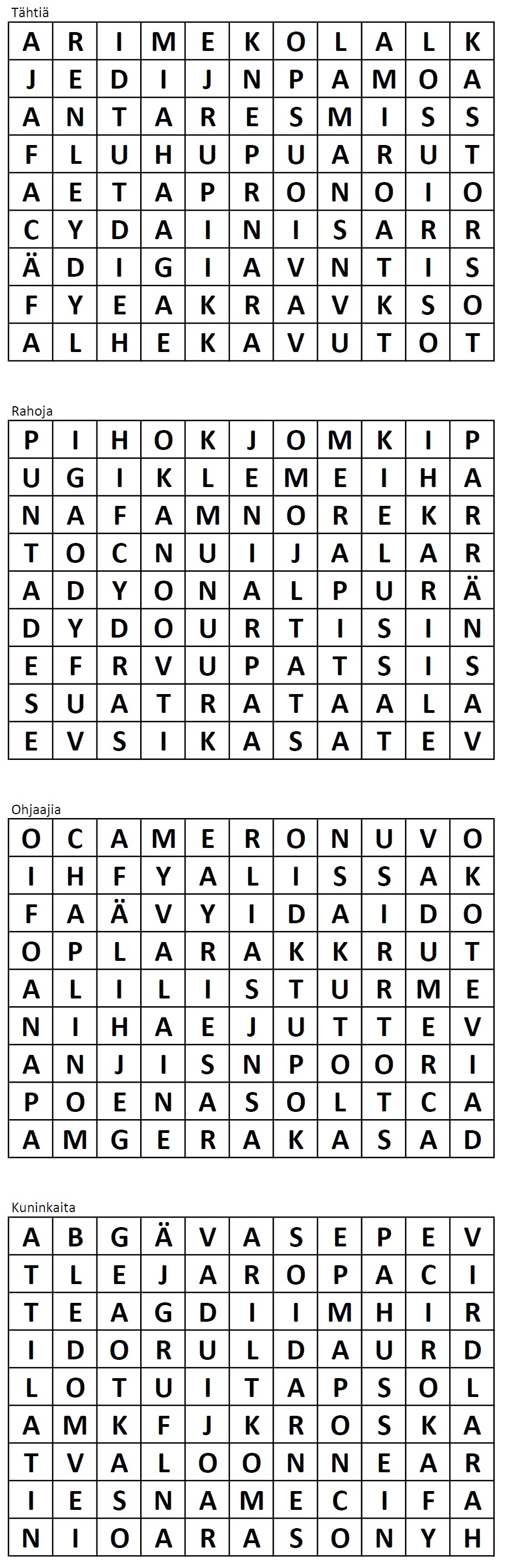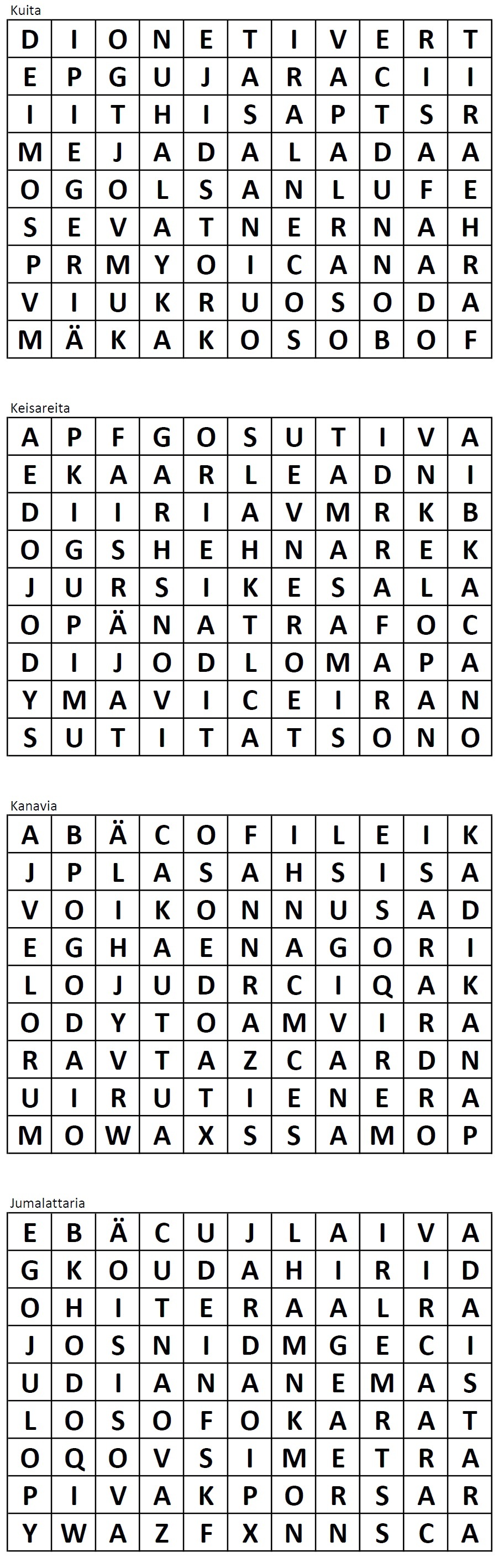 KUSSAKIN TAULUKOSSA 7 SANAA JA VÄHINTÄÄN 4 KIRJAINTA SANASSA