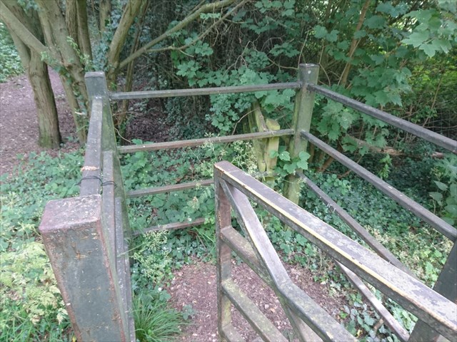 Continuing along the path it goes straight for a while but then as more trees appear you will see a fence and gate. There is a path coming in from the right just after this gate, although the continuing path you need is straight on. Firstly there is a cache to find though.