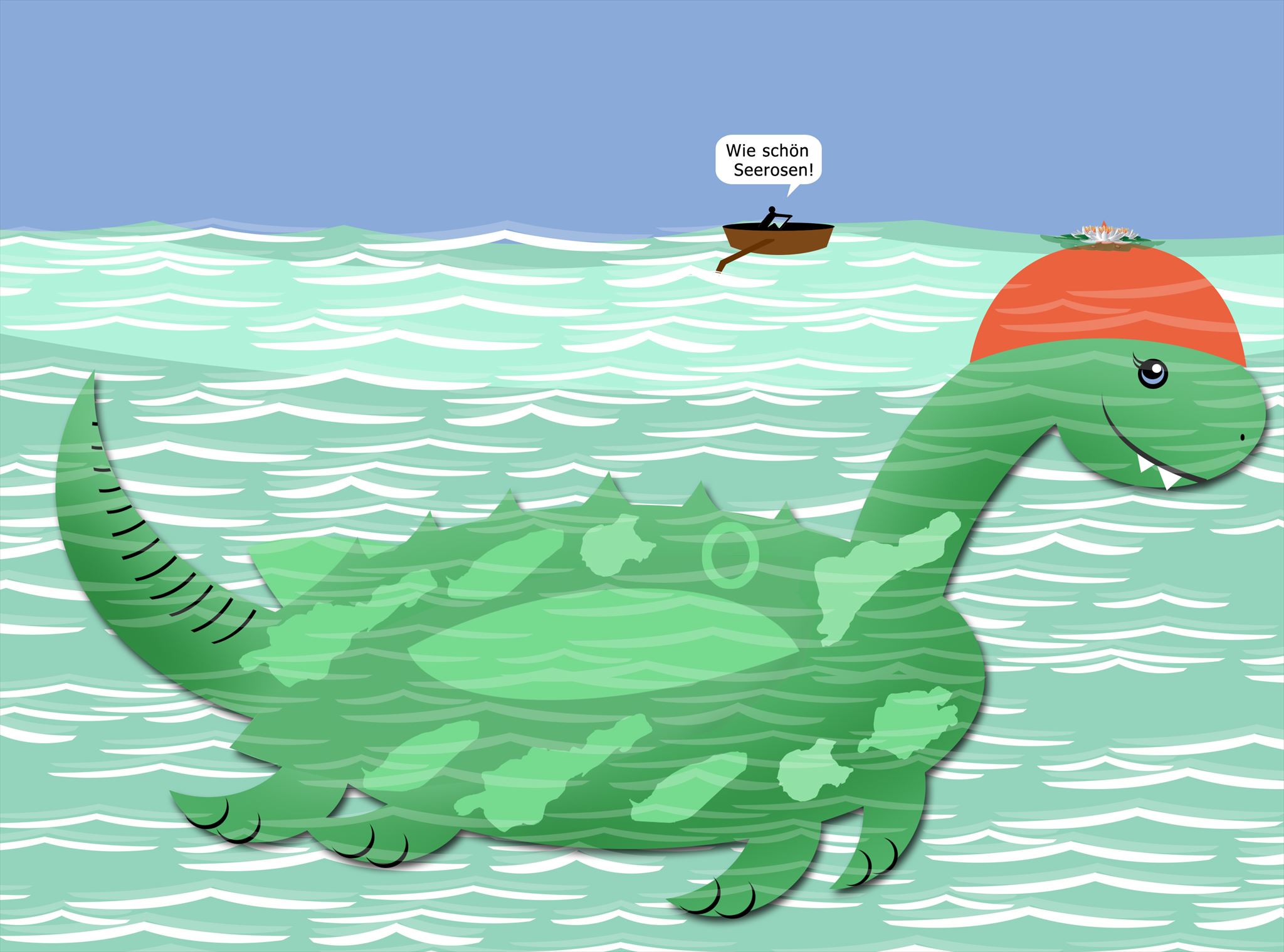 Laut seines Ur-Großvaters der, man glaubt es kaum, ein Österreicher war gehören noch einige weitere „Seeungeheur“ zu Nessies Familie. Gedankenlose Weltenbummler haben einst zwei Eier des hübschen Urzeit Tieres mitgenommen und verloren.