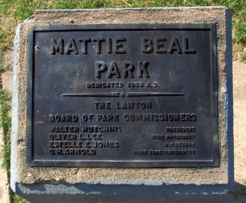 The south side Beal Addition became Lawton's first subdivision, and the city was further enhanced by Mattie Beal when she gave land for Lincoln Elementary School, the Beal Heights Presbyterian Church and seven or more acres for the Mattie Beal Park.