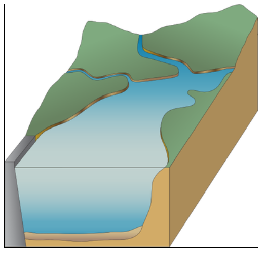 Man-made lakes, often called reservoirs or artificial lakes are made by people who have dug basins or dammed rivers or springs. They often have a tree shaped appearance, thin at one end, a narrow lake basin, and thicker deeper appearance toward the dam. Man-made lakes receive their water from runoff which is linked to rainfall. Due to this fact the water levels of man-made lakes change often.