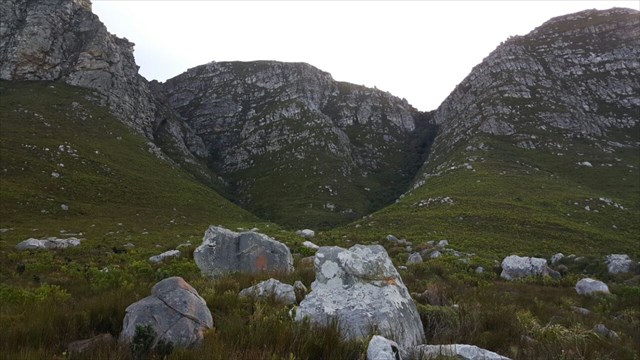 Looking behind her, she said "wow look at the big smile the mountain is giving us!"