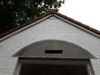 Met hoeveel horizontale bleke strepen wisselen de rode bakstenen af in de voorgevel van dit gebouw ?
