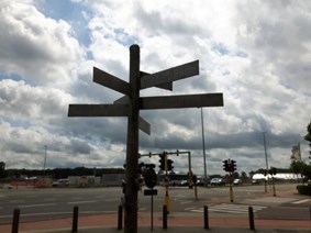 Hoeveel wegwijzers zijn er aan de paal bevestigd ?