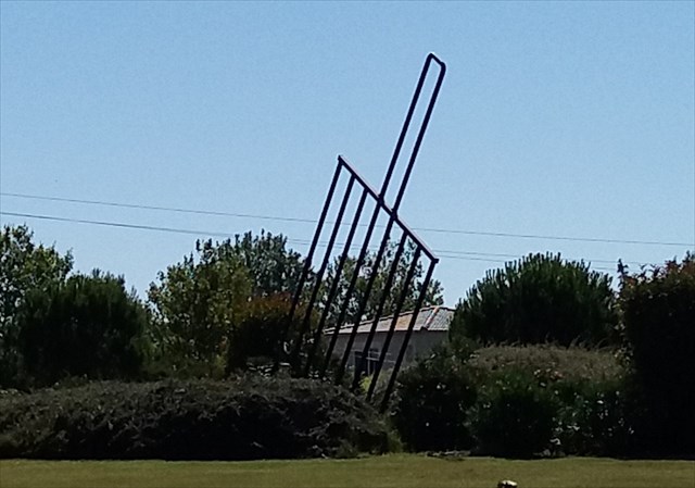 Quand on aborde ce rond-point avec cet immense gril on pense du moins moi, aux grillades faites entre amis ou en famille dans le jardin.