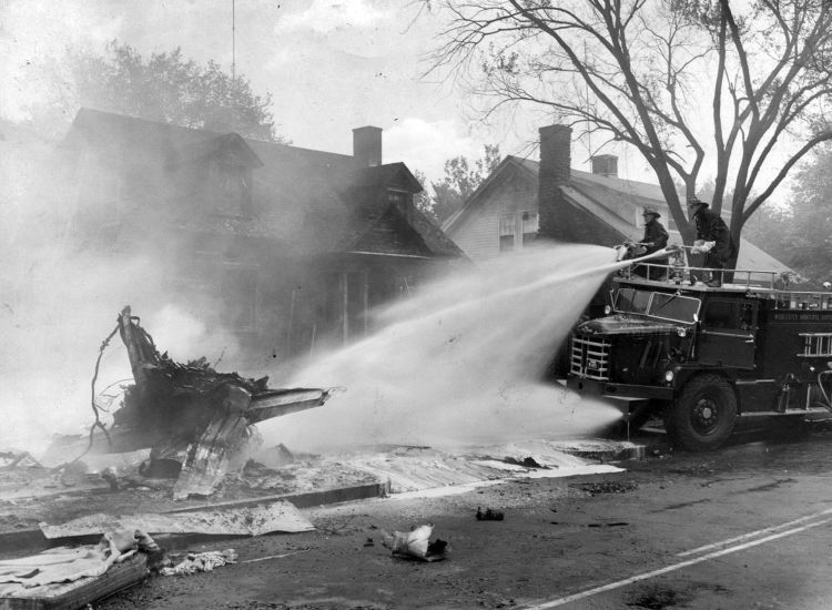 Many of us, myself included, pass by this area many times. A quiet neighborhood with tree lined sidewalks, beautiful architecture, and a lovely lake. However about 60 years on this very day of this caches placement, things weren't so quiet for this piece of suburbia. "On July 19, an Air National Guard jet trainer on a routine exercise from Grenier Air Force Base in Manchester, New Hampshire, crashed in the front yard of a home. The pilot was First Lt. Lawrence C. Guild from Quincy, and his navigator, Capt. John F. Murphy Jr. Murphy, a father of five, had lived with his family on Tower Street in Worcester." It was after locating a few caches and waymarks of plane crashes that gave me the idea for this cache. The puzzle is simple; search the web for the information required for each equation to get the coordinates to the final.