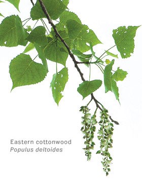 Also known as Eastern poplar, a single cottonwood tree can release more than 25 million seeds, each suspended by a frizzy mass of cottony fibers that can transport the seed far from the tree.