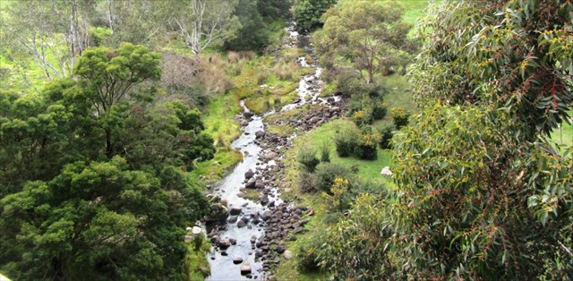 Downstream of the storages, the catchment is extensively cleared and the creek meanders through a generally incised basaltic valley with a mostly confined floodplain. The dominant land-uses are broadacre agriculture, dairying and mixed enterprise including cropping. Potatoes are a major crop in the catchment.