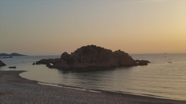 Petit îlot en bordure de plage sur le Ruppione, un îlot granitique rouge qui abrite 2 grottes peu profondes et un ancien amarrage de bateau !