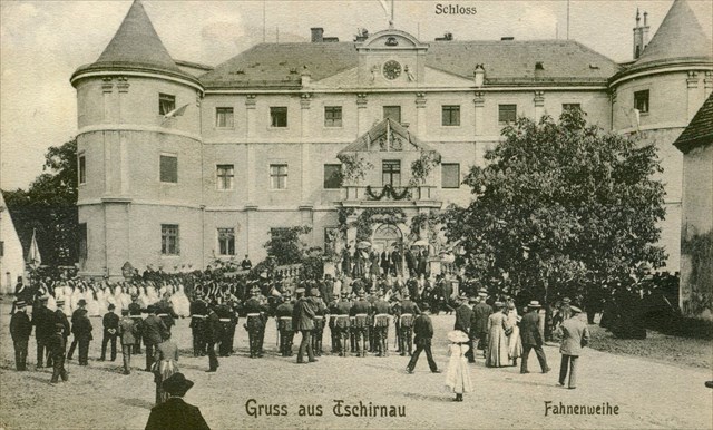 Pierwsze wzmianki o Czerninie pochodzą z roku 1308, gdy miejscowość ta (jeszcze jako wieś Schyrnino, później też Czyrna i Chirna) wchodziła w skład lokalnych dóbr kościelnych. W połowie XIV wieku Czernina została własnością szlachecką, a jej pierwszym znanym właścicielem był zmarły w 1423 roku Jan z Czerniny (Czerniński) herbu Wierzbno, kasztelan międzyrzecki i późniejszy fundator zamku w Rydzynie. Ponoć to właśnie on zainicjował budowę murowanej siedziby na przełomie XIV i XV wieku. Po śmierci Jana majątkiem na krótko zarządzał jego starszy syn Jocusch von der Czyrne, który ok. 1430 sprzedał go Magnusowi von Label. Przypuszczalnie w 1492 roku miejscowość już wraz z istniejącym zamkiem trafiła w ręce rodu von Dohna (właścicieli Chróściny). Jeden z von Dohnów, Henryk VII, uzyskał (1515 r.) od Władysława Jagiellończyka przywilej lokacyjny dla Czerniny, rozpoczynając dynamiczny okres rozwoju tej miejscowości. W 1538 roku Henryk VII von Dohna przepisał/odsprzedał majątek braciom Aleksandrowi i Baltazarowi von Stosch z Mojęcic, których potomkowie (synowie Baltazara) rozbudowali i ufortyfikowali miasto. W roku 1600 zabudowa miejska była już całkowicie otoczona murami (z trzema bramami wjazdowymi) jak i fosą. W 1595 dokonano na stałe trwałego podziału majątku na: Czerninę Górną wraz z miastem i Czerninę Dolną. Obecnie funkcjonuje podział na Czerninę (dawna Czernina i Czernina Górna/ Lesten do 1937, potem Tschirnau, Ober Tschirnau) i Czerninę Dolną (Nieder Tschirnau).