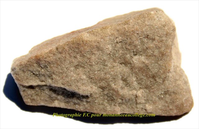 Sandstone is a detrital sedimentary rock, derived from the aggregation and cementation (or diagenesis) of sand grains. It may be a coherent and hard rock1. These sand grains are often composed of silica (usually quartz, but sometimes grains of feldspar and black micas), but they may have other compositions. Arenite is therefore referred to in the case where the grains are carbonated.